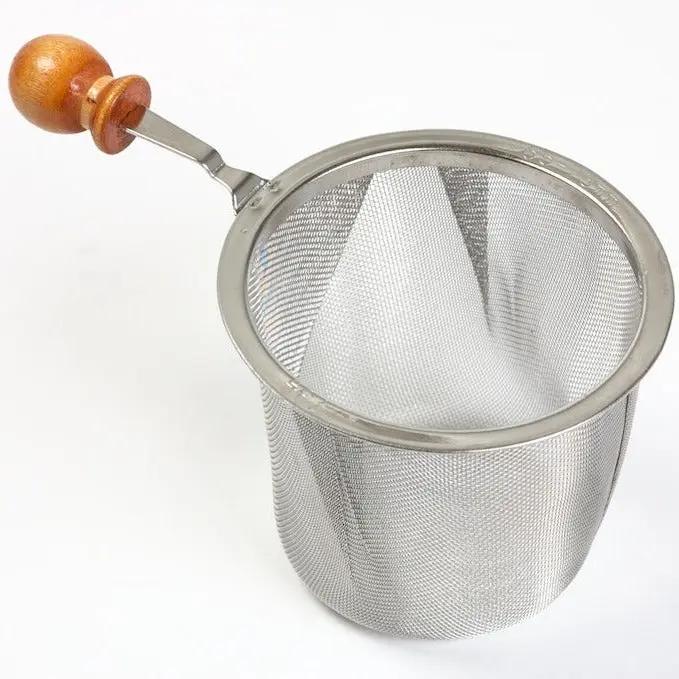 Filtre en acier inoxydable avec une petite poignée en bois. Idéal pour les théières ou les tasses avec une ouverture de 65 à 72 mm. Pratique et économique, il s'agit d'un de nos meilleurs vendeurs parmi nos accessoires à thé.