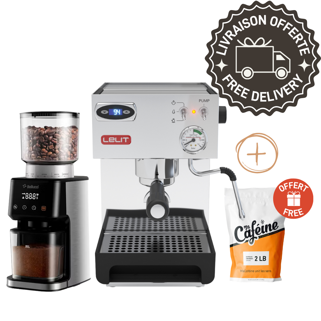 Découvrez l'excellence en tasse avec ce duo premium : la machine à espresso Lelit Anna PL41TEM associée au moulin Bellucci Casa. La Lelit Anna offre une précision thermique supérieure et une construction italienne robuste, idéale pour les amateurs d'espresso exigeants. Le moulin Bellucci Casa complète parfaitement cette machine avec ses meules coniques qui garantissent une mouture uniforme et constante.