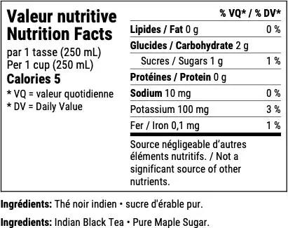 Ingrédients : Thé noir indien, sucre d'érable pur