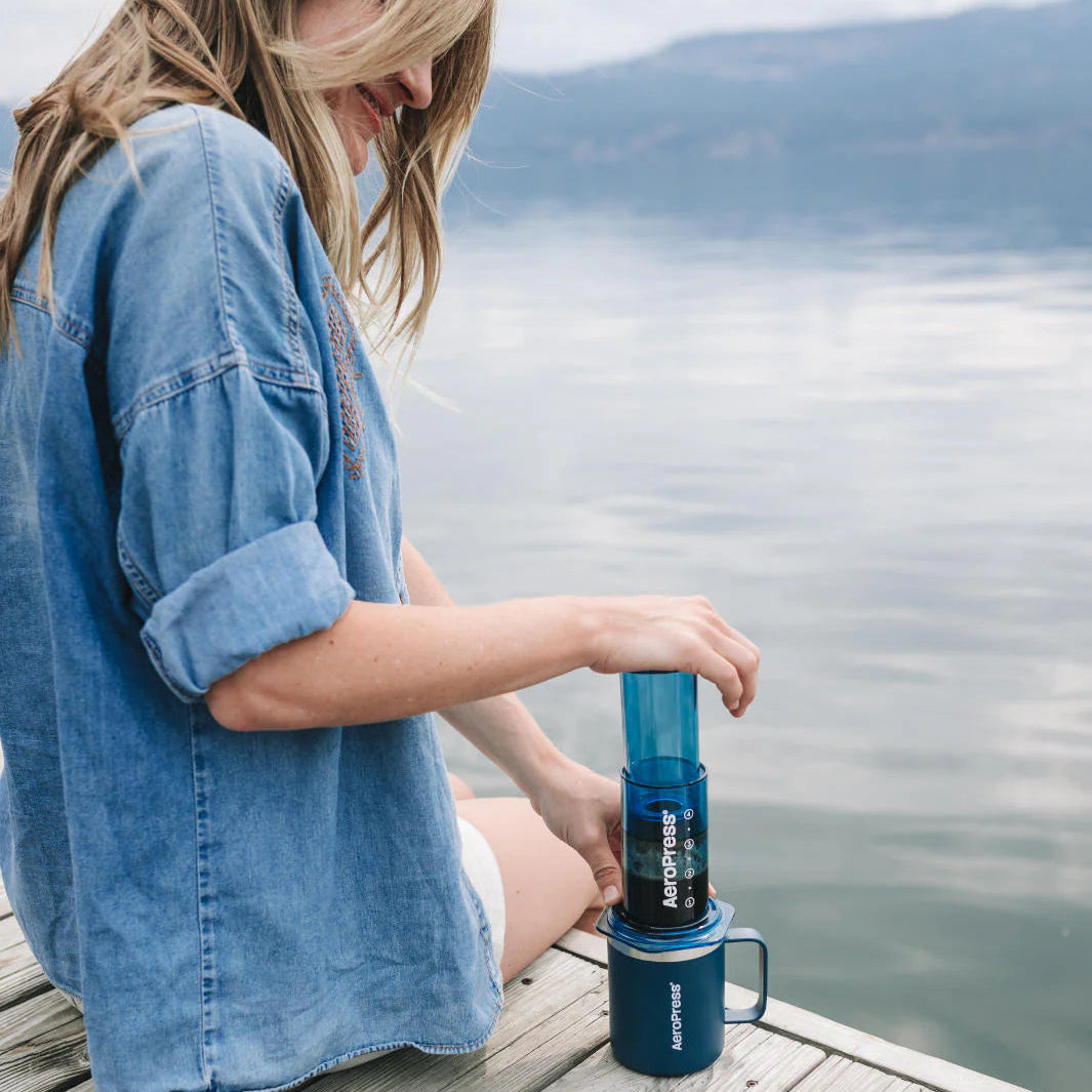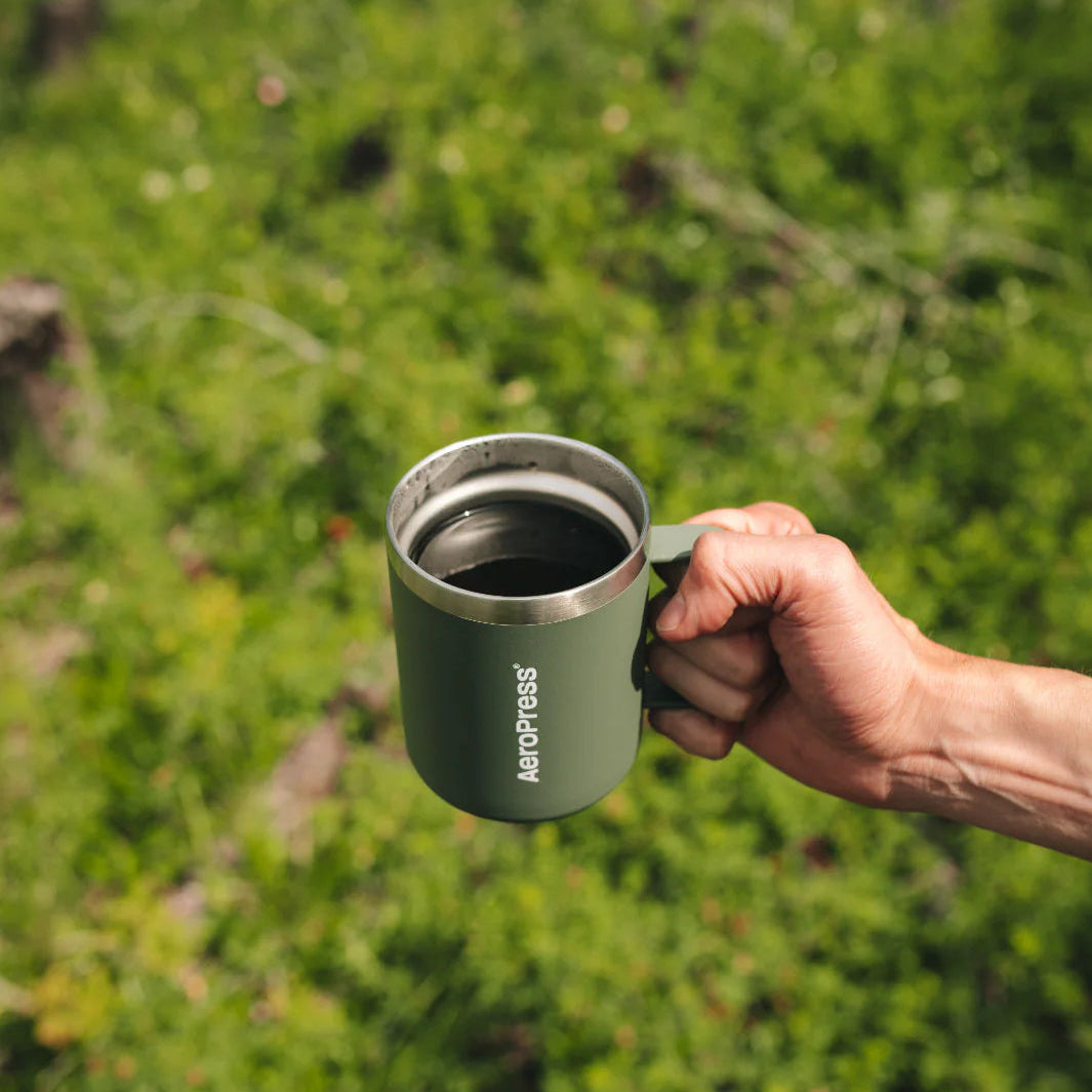 Voici la tasse de voyage AeroPress, votre complice café sur la route. Fabriquée en acier inoxydable à double paroi avec isolation sous vide, cette tasse de 355 ml (12 oz) garde votre boisson bien chaude ou agréablement froide pendant des heures, tandis que son couvercle à glissière anti-éclaboussures aide à prévenir les dégâts. Sa base large et stable est conçue pour permettre l’infusion directe avec les cafetières AeroPress standard, parfait pour des matins sans dégâts et des aventures spontanées.