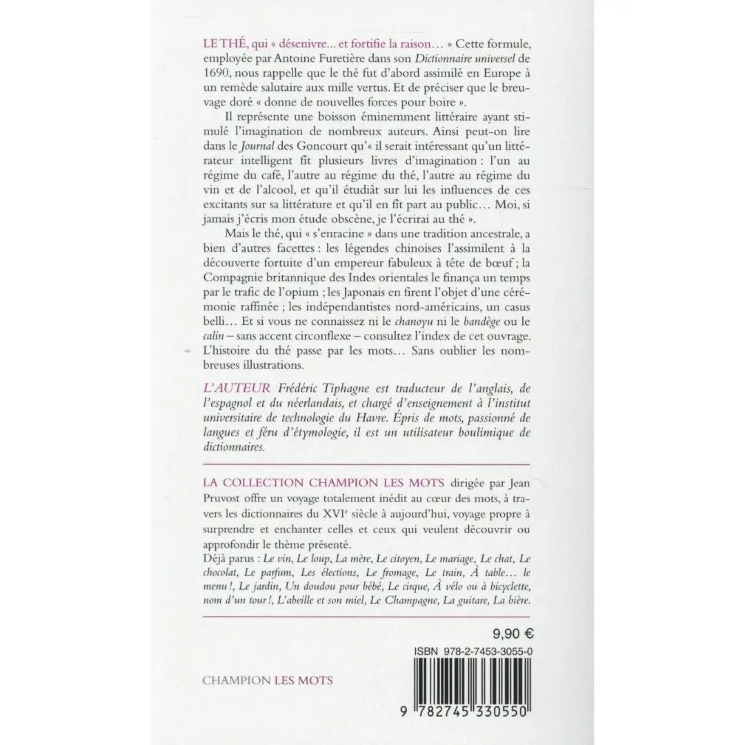 This phrase, used by Antoine Furetière in his Universal Dictionary of 1690, reminds us that tea was initially considered in Europe to be a beneficial remedy with a thousand virtues. He further specifies that the golden beverage "gives new strength for drinking." It represents an eminently literary drink that has stimulated the imagination of many authors. Thus, we can read in the Goncourt Journal that "it would be interesting if an intelligent writer were to write several books of imagination: one while on a coffee regimen, another on a tea regimen, and another on a regimen of wine and spirits, and to study the influence of these stimulants on his writing and share his findings with the public… As for me, if I ever write my obscene study, I will write it while drinking tea." But tea, which is "rooted" in an ancestral tradition, has many other facets: Chinese legends liken it to the fortuitous discovery of a fabulous emperor with the head of an ox; the British East India Company financed it for a time through the opium trade; the Japanese made it the subject of a refined ceremony; the North American independence fighters, a casus belli… And if you are unfamiliar with chanoyu, bandège, or calin – without a circumflex accent – consult the index of this work. The history of tea is told through words… Not forgetting the numerous illustrations.