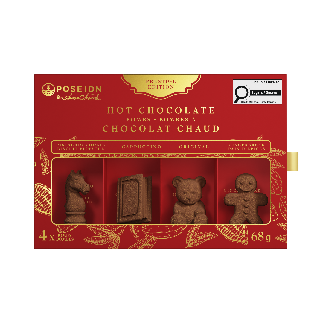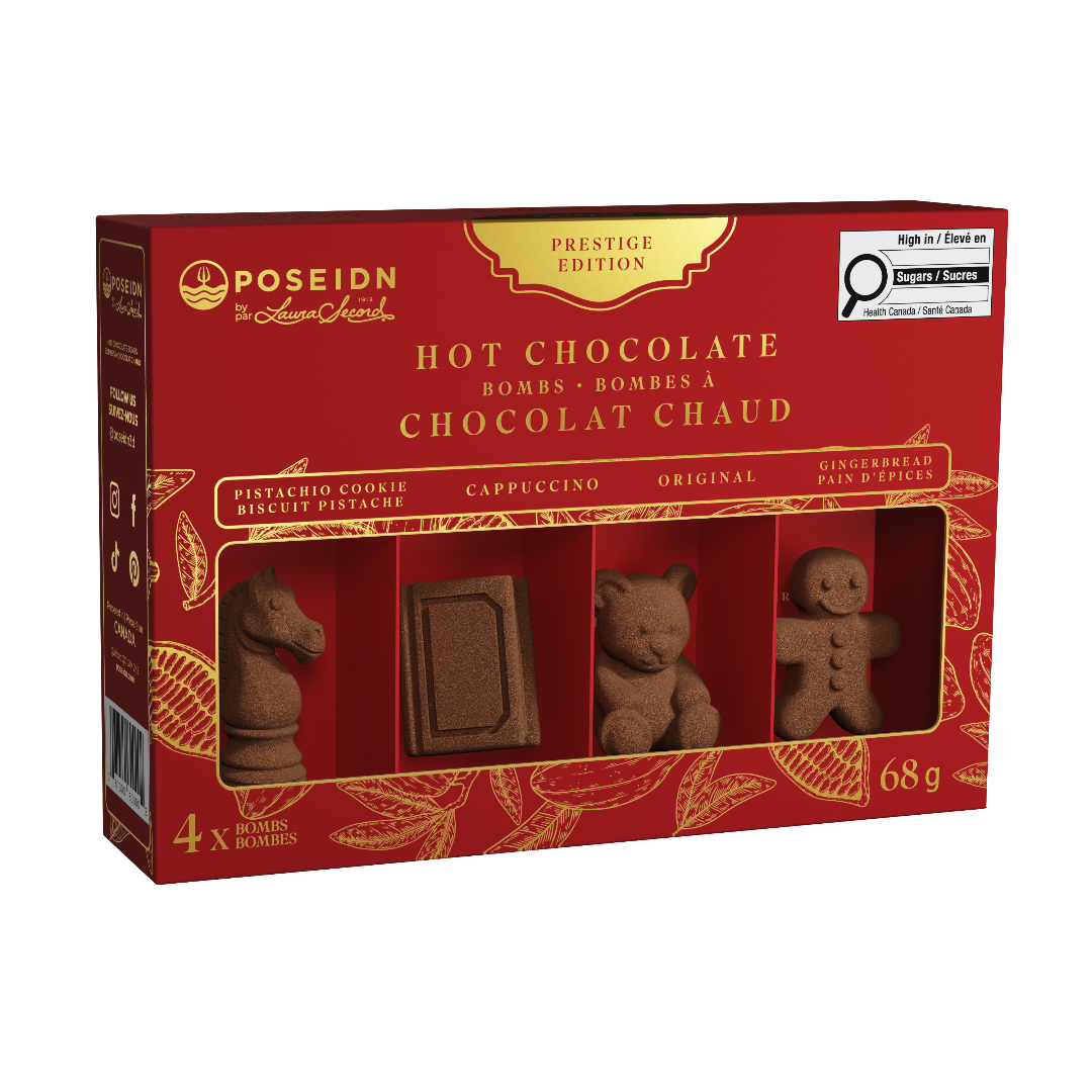 Offer elegance with this Ruby Gift Set, a prestige collection of 4 3D Bombs with exquisite flavors. Pistachio Biscuit, Cappuccino, Original and Gingerbread come together for an unparalleled chocolate experience. Perfect for the holidays, these dairy-free bombs transform every cup into a moment of pure indulgence. A sophisticated gift for true hot chocolate connoisseurs.