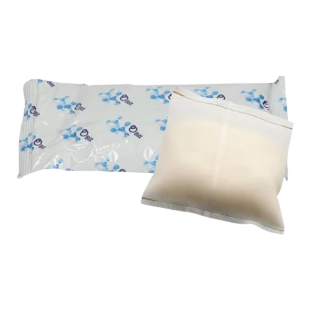 • Une fois le plastique retiré, mouiller avec de l'eau froide pour activer les granules argentés;