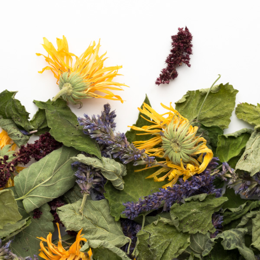 A floral, artisanal herbal tea, entirely hand-picked and full of color, combining orange (calendula), mauve (agastache) and dark red (amaranth) with the delicious green of lemon balm leaves. Respect for biodiversity is at the heart of the values of the herbalist who offers us this magnificent product.