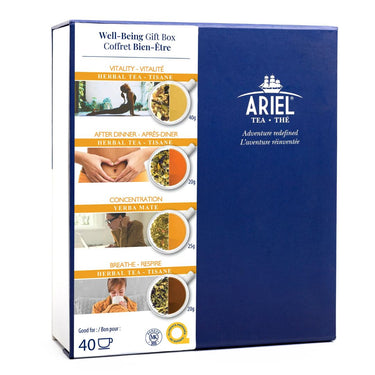Four This luxury gift set includes Ariel wellness herbal teas and a stainless steel infuser for a relaxing and enjoyable experience. Treat yourself to a moment of pleasure and refinement!