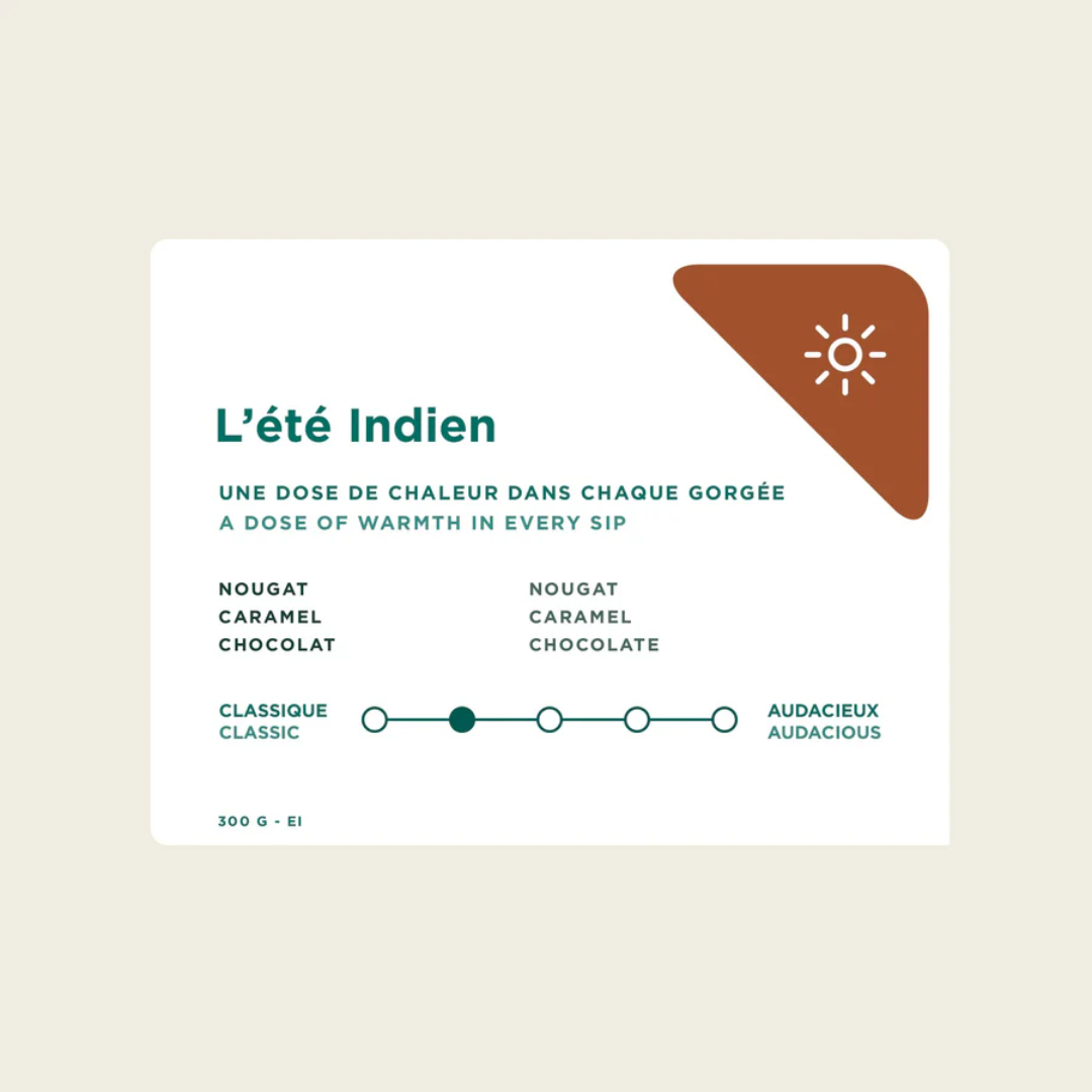 Indian Summer is a well-rounded, well-balanced coffee. Its slight hint of acidity gives it a pleasantly complex character.