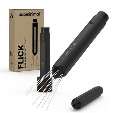 Le Subminimal Flick WDT est un outil de distribution pour espresso à la fois intuitif, agréable à utiliser et sécuritaire. Grâce à ses aiguilles rétractables, il suffit d’un clic pour les déployer lorsque vous en avez besoin, puis d’un simple mouvement du poignet pour les rétracter. Résultat : une préparation du café plus efficace, plus précise… et franchement plus plaisante.