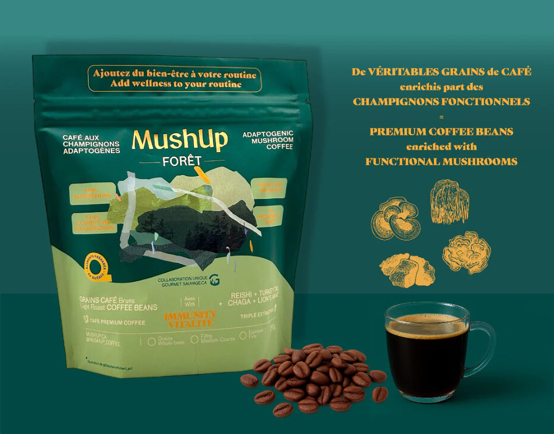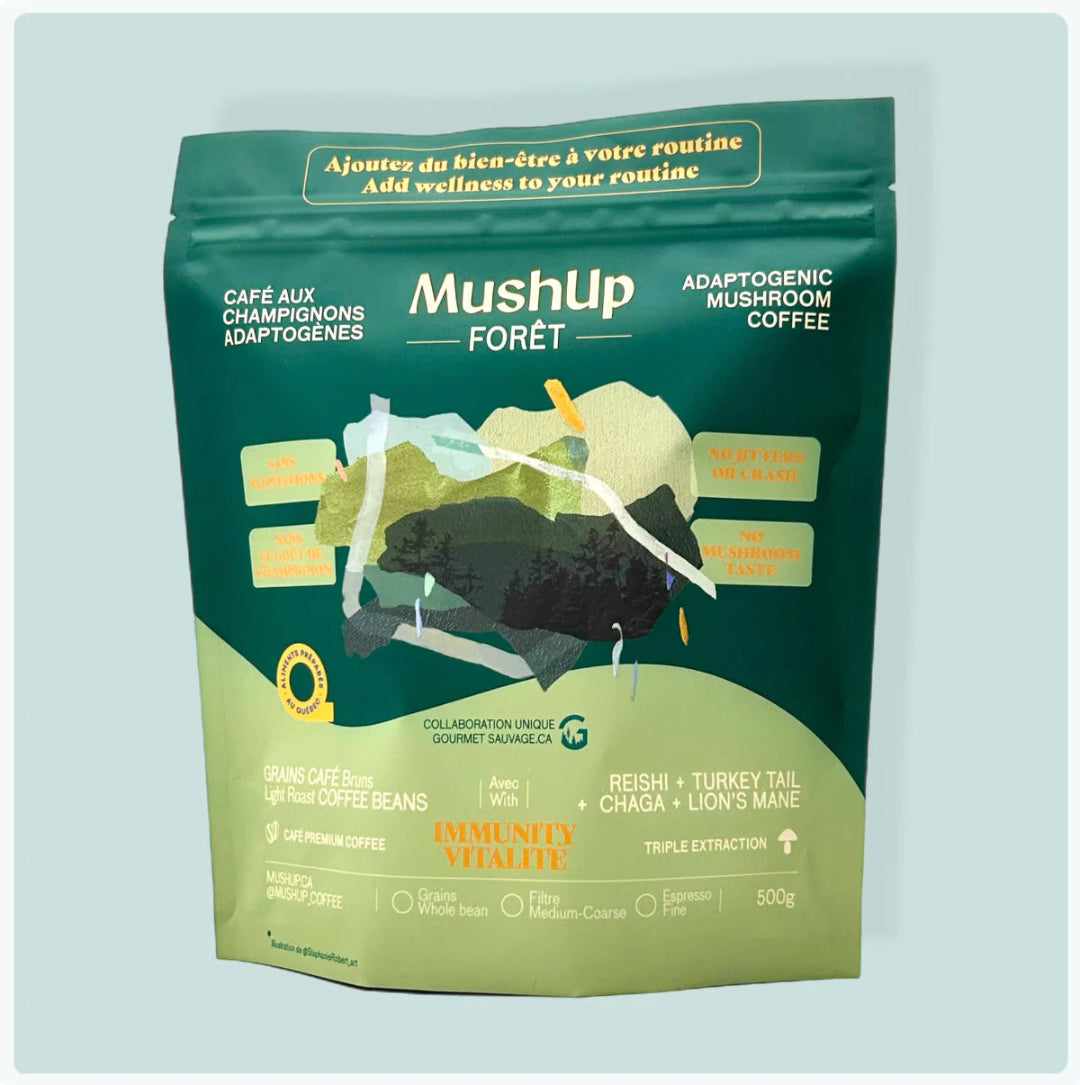 Née de l’amour du café et d’une passion pour les plantes aux vertus médicinales, cette entreprise montréalaise est guidée par la conviction que la santé passe d’abord par l’alimentation. Cette boisson unique, capable d’intégrer les bienfaits des champignons médicinaux de nos forêts, à notre routine quotidienne la plus précieuse, le CAFÉ ! Notre fondatrice Maëva et son acolyte Isabelle (voir photo) travaillent exclusivement avec des microtorréfacteurs et mycologues locaux. Elles s’assurent ainsi que les valeurs écoresponsables et la mission de MushUp soient toujours représentées à travers le goût et la conception de ce café de premier grade, capable d’accompagner les défis quotidiens de ses adeptes.